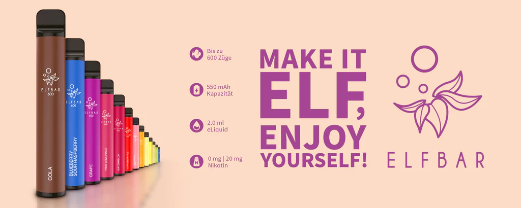Elfbar 600 ist die bekannteste Einweg E-Zigarette Europas. Bei uns findest du alle Elfbar 600 Modelle – sofort lieferbar, in über 30 Geschmackssorten.